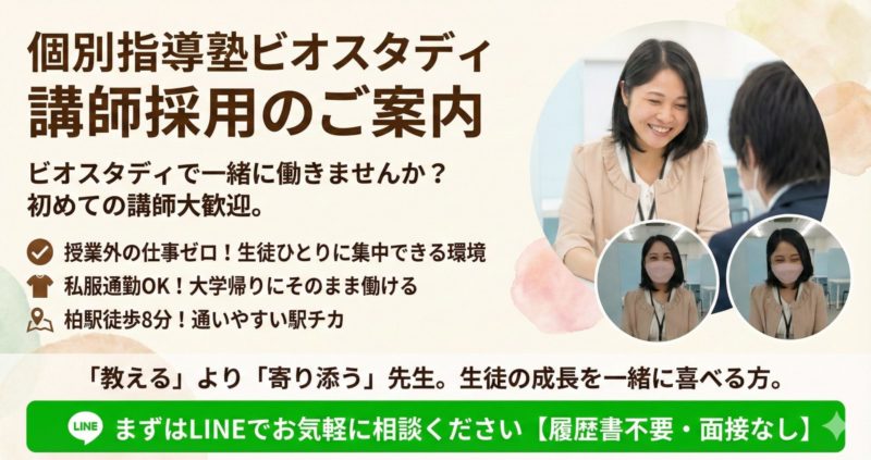 - ビオスタディの授業は生徒ひとりだから、講師にもメリットがあるシステムです!